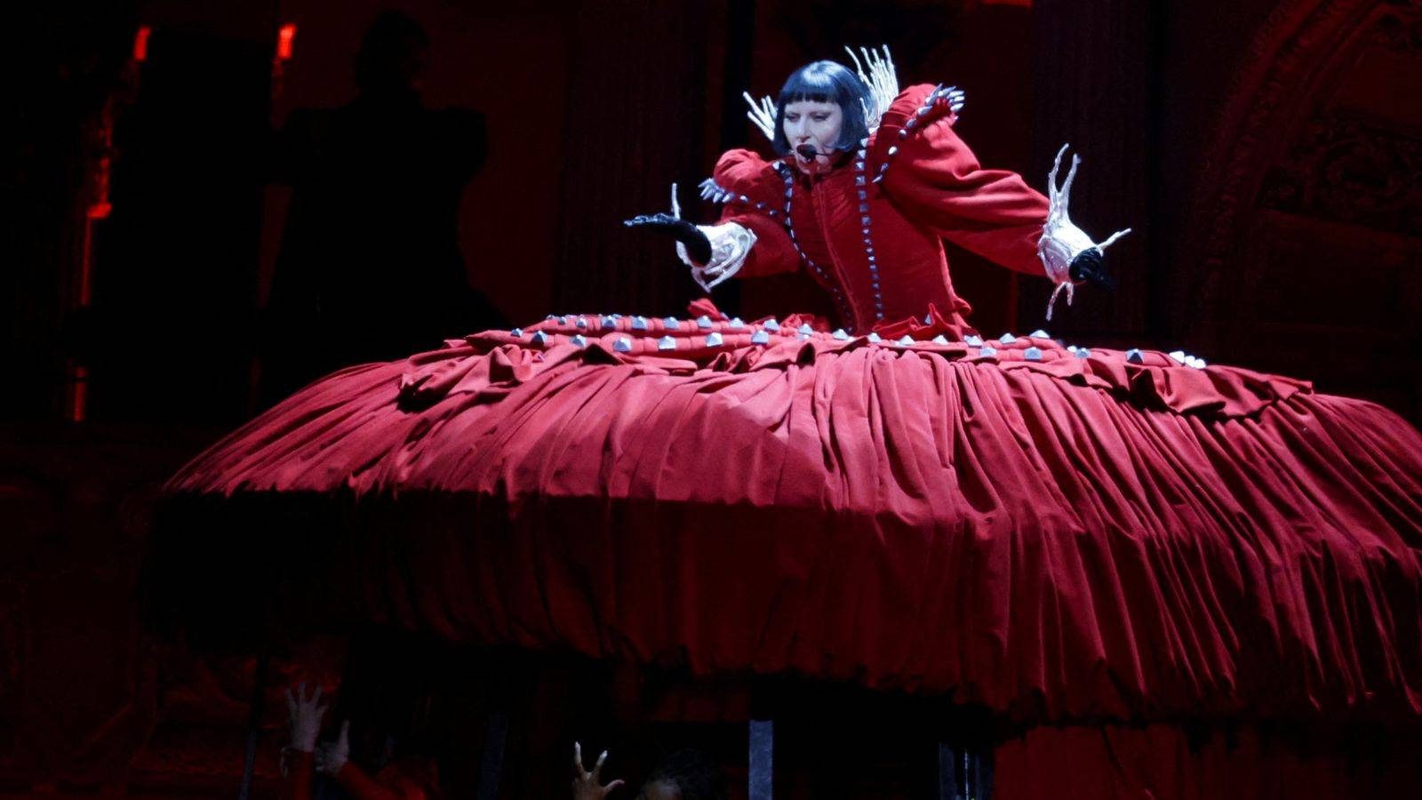 Gaga, who released her seventh studio album, Mayhem, in March, opened with a dramatic, operatic edition of her 2011 track Bloody Mary, before launching into Abracadabra, a recent track.