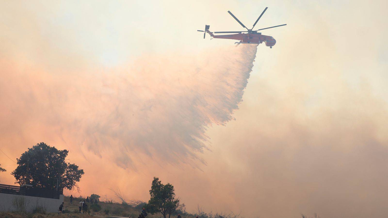 Photos showed houses and tree-covered hills on fire as temperatures hit 38C (100F) – with warnings they could climb to 44C (111F) – and dry conditions and high winds fanned the flames.